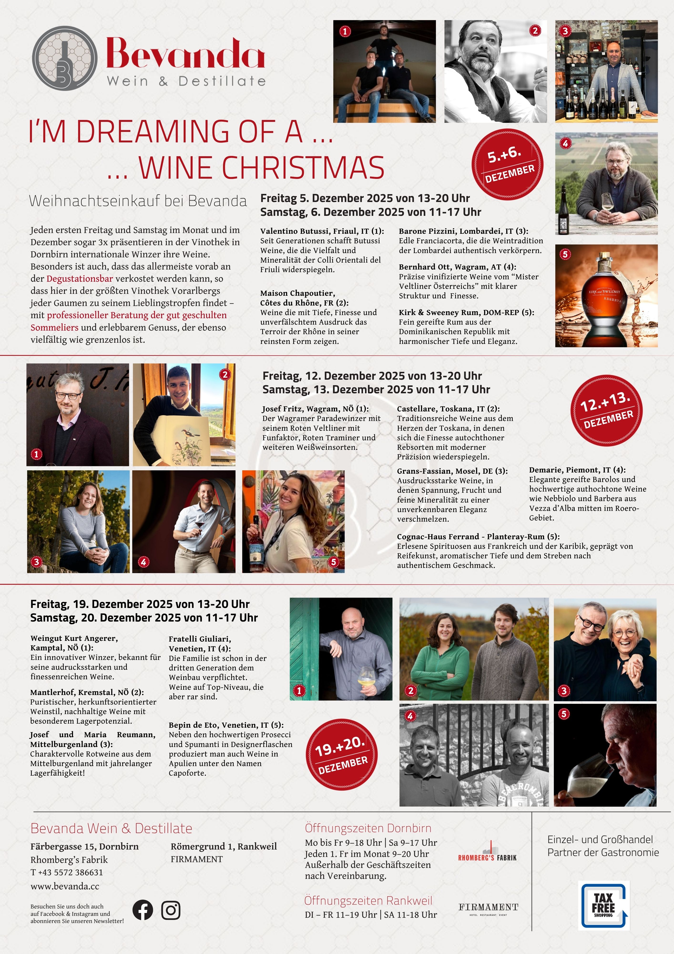 Entdecken Sie exklusive Weine von Spitzenwinzern & edle Spirituosen und verbinden Sie die Suche nach Weihnachtsgeschenken mit Genuss!Jedes Wochenende im Dezember: